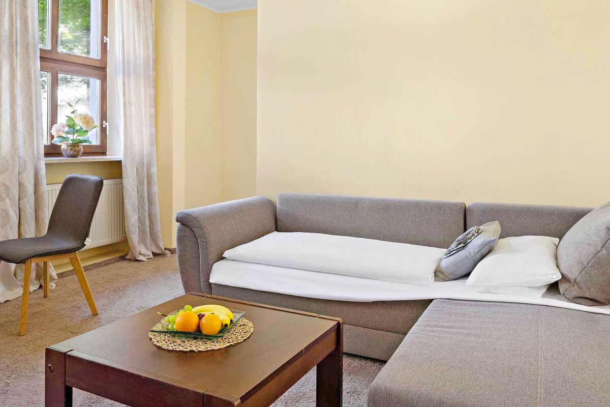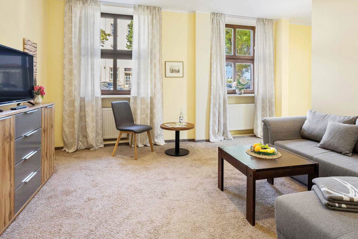 Großzügiges Apartment mit 27 m², ebenerdig ( 3 Stufen ) mit eigenem Eingang. Schlaf und Wohnreich getrennt, Doppelbett mit Leselampen, komfortable Relax-Couch, großer Kleiderschrank, Badezimmer mit Badewanne, Radio im Bad, WC, Waschtisch, Kosmetikspiegel, Föhn,  LED-Beleuchtung am Bett, Leselampe  Sat-TV,  kostenloses WLAN. Das Apartment liegt zur Straßenseite und bietet sowohl dem Business- als auch dem Privatgast den idealen Rahmen für einen angenehmen Aufenthalt. Die Bilder dienen als Beispiel, die Möblierung oder der Grundriss können variieren.