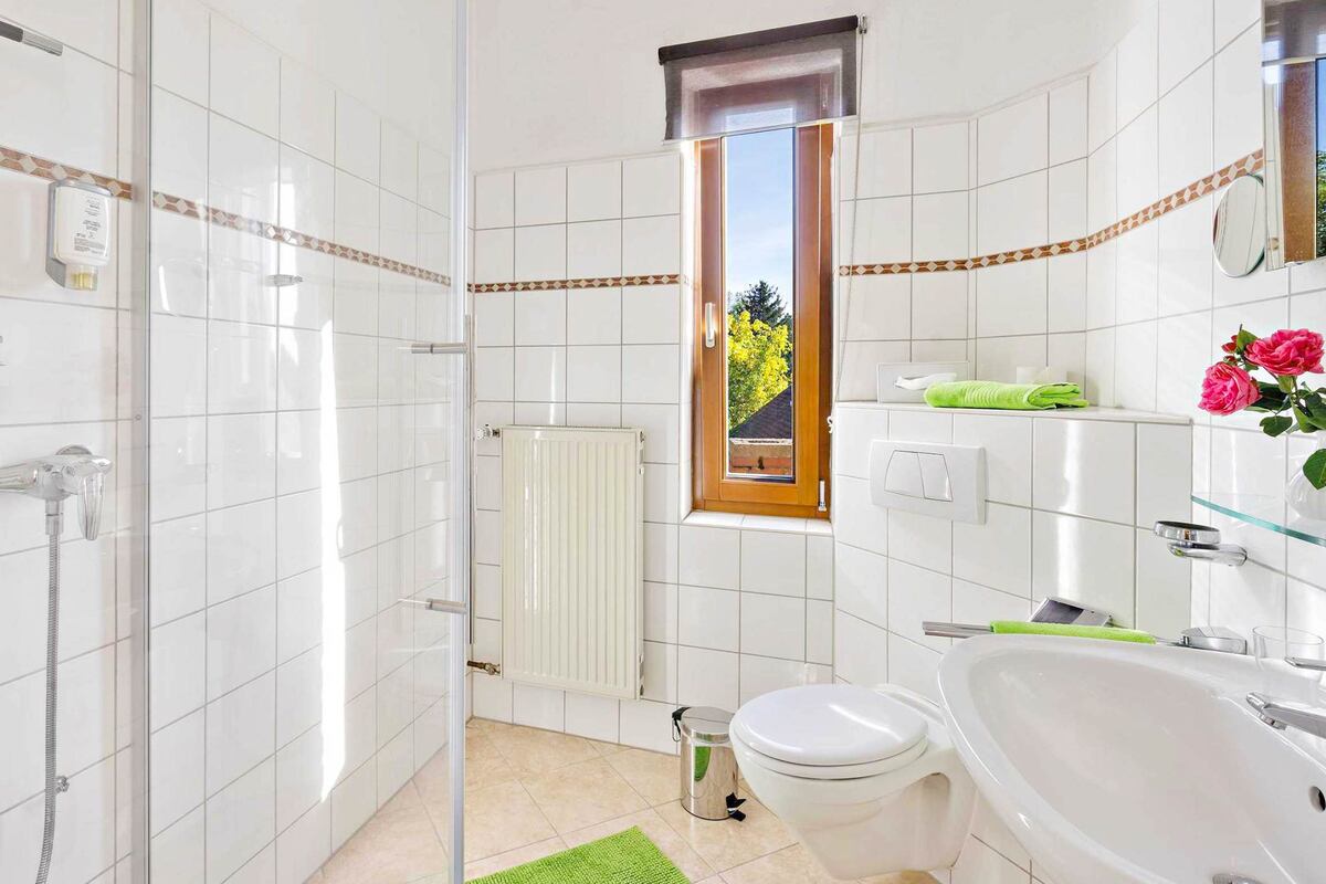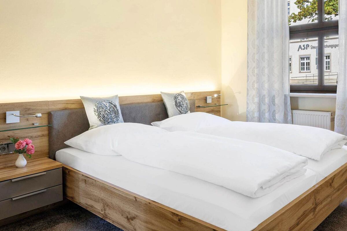 Apartment mit 20 m², ebenerdig ( 3 Stufen ) mit eigenem Eingang.  Doppelbett mit Leselampen, großer Kleiderschrank, Badezimmer mit Dusche, WC, Waschtisch, Kosmetikspiegel, Föhn und Radio im Bad, LED-Beleuchtung am Bett, Sat-TV,  kostenloses WLAN. Das Apartment liegt zur Hof/Gartenseite und bietet sowohl dem Business- als auch dem Privatgast den idealen Rahmen für einen angenehmen Aufenthalt. Die Bilder dienen als Beispiel, die Möblierung oder der Grundriss können variieren.