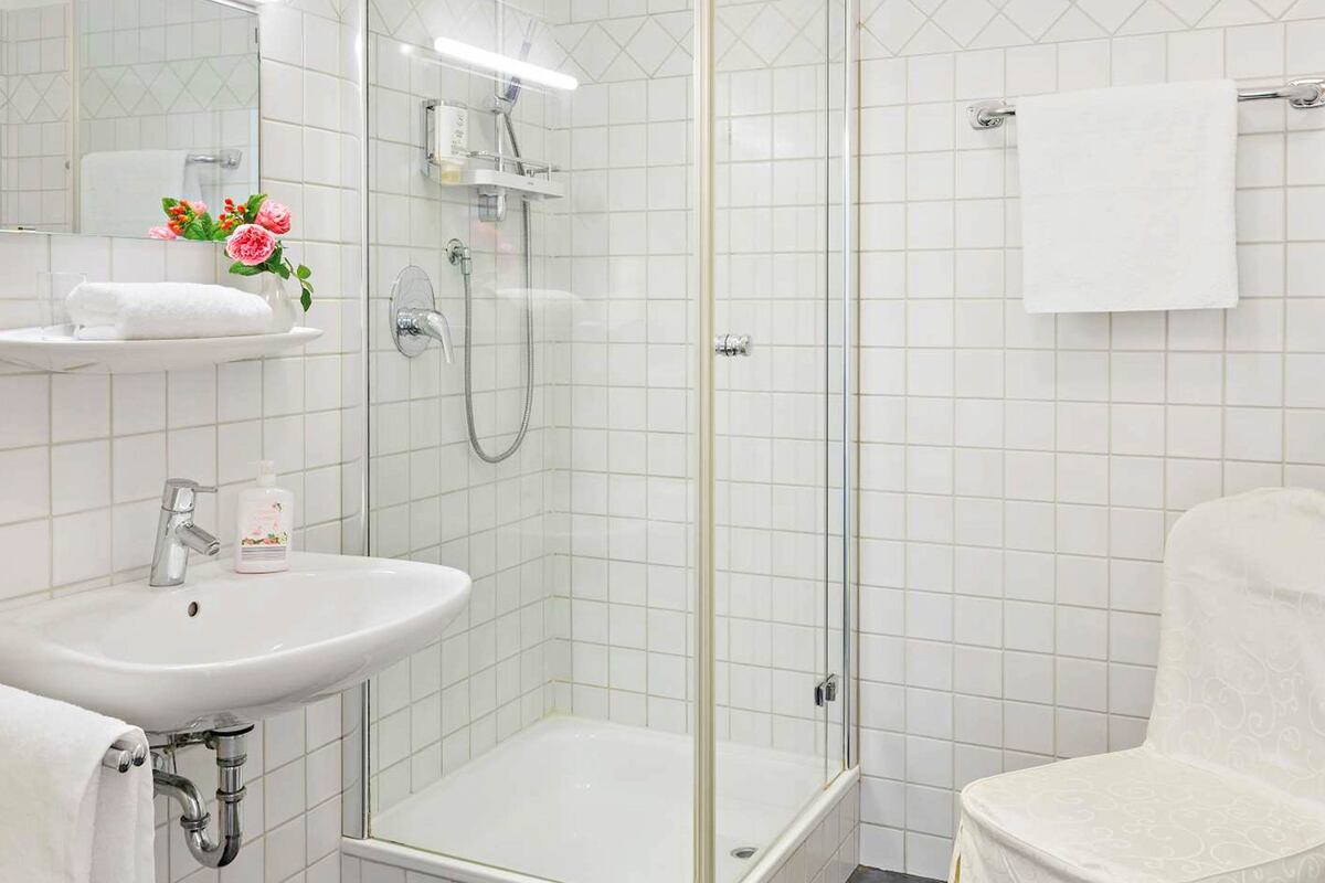 Standard Einzelzimmer mit 10 m², teilweise mit Leselampe, Schreib-/Arbeitstisch, teilweise kleiner Tisch mit Stuhl, teilweise kleine Garderobe, Badezimmer teilweise mit Fenster, Dusche, WC, Waschtisch, Kosmetikspiegel, Föhn, Telefon, Sat-TV,  kostenloses WLAN. Die Zimmer liegen zur Hof/Gartenseite und bieten sowohl dem Business- als auch dem Privatgast den idealen Rahmen für einen angenehmen Aufenthalt. Die Bilder dienen als Beispiel, die Möblierung oder der Grundriss können variieren.