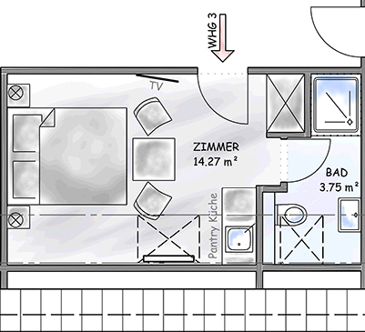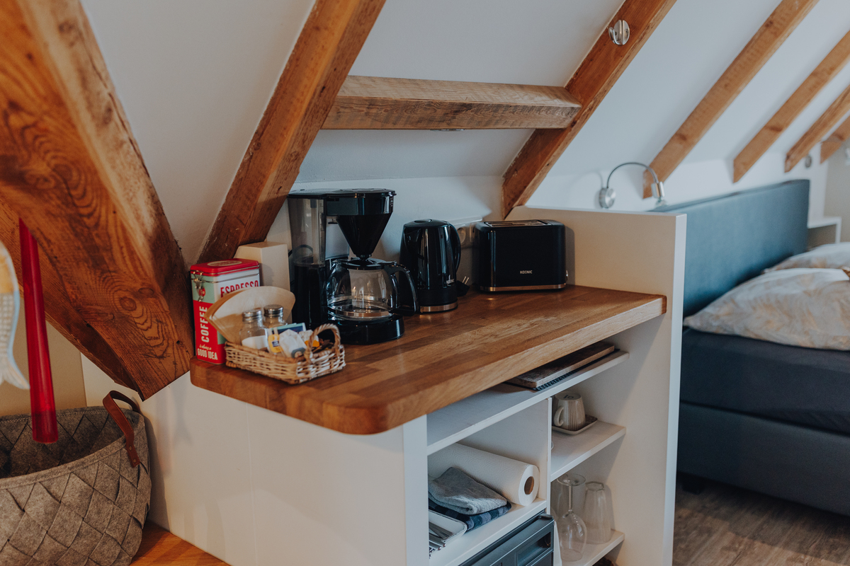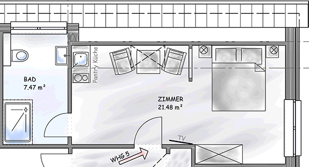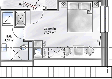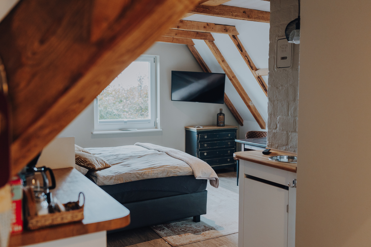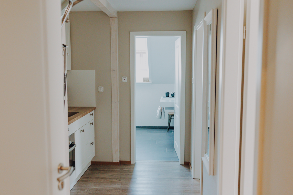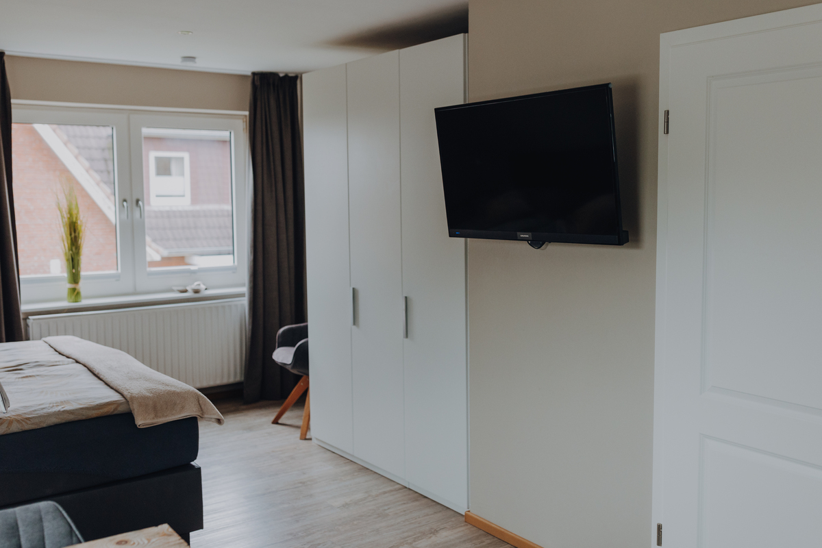 Hochwertige Boxspringbetten, TV, freies WLAN, Bad mit Duschbad, WC, Fön und Kosmetikspiegel. Unsere Apartments verfügen über eine Küchenzeile.