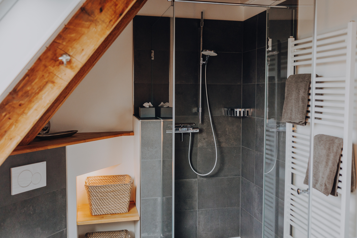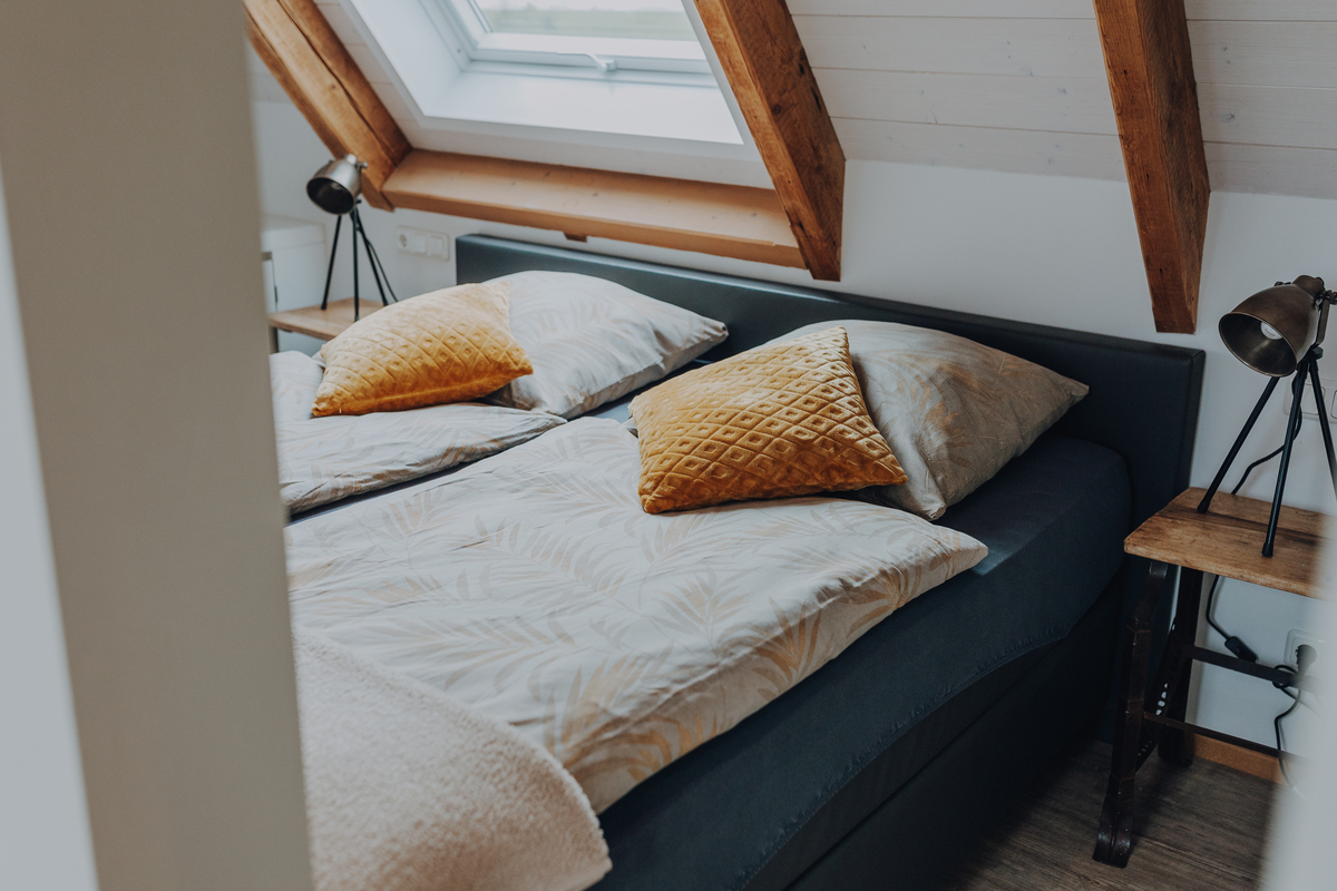 Hochwertige Boxspringbetten, TV, freies WLAN, Bad mit Duschbad, WC, Fön und Kosmetikspiegel. Die Doppelzimmer verfügen über eine Teeküche (keine Kocheinheit)